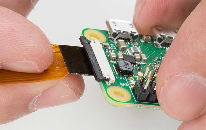 There are only two connections to make. How to connect raspberry pi camera module to raspberry pi zero w and the official case equipped with a wireless lan and priced at only 10 i see the raspberry pi zero w as a good candidate for a low cost cctv that i can deploy at my house for surveillance purposes. If you want to bridge those contacts out onto another pcb you ll want this cable. Display ribbon cable connected to the raspberry pi.