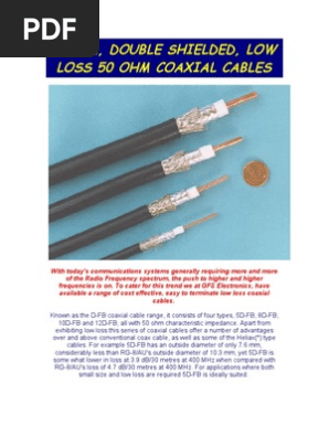 Their biggest difference to the common rg6 coaxial cables used for cable tv and cable internet is that rg8 is unable to carry pure video signals due. The term coaxial refers to the inner conductor and the outer shield sharing a geometric axis. Rg8 coax cable has an attenuation at 1 ghz of 8 db and a maximum power of 190 watts at 1 ghz. Coax type characteristic impedance outside diameter velocity factor atten 100 mhz atten 1000 mhz comments.